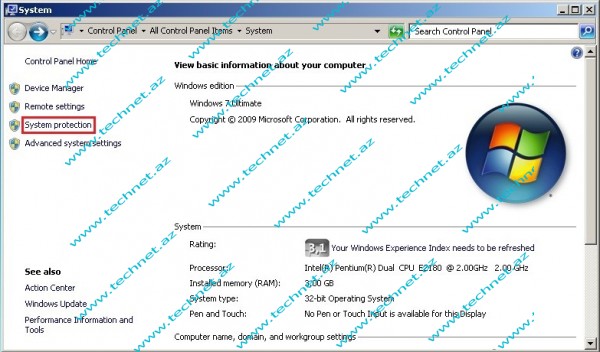 Açılan pəncərədə System Protection bölümünə daxil oluruq.
