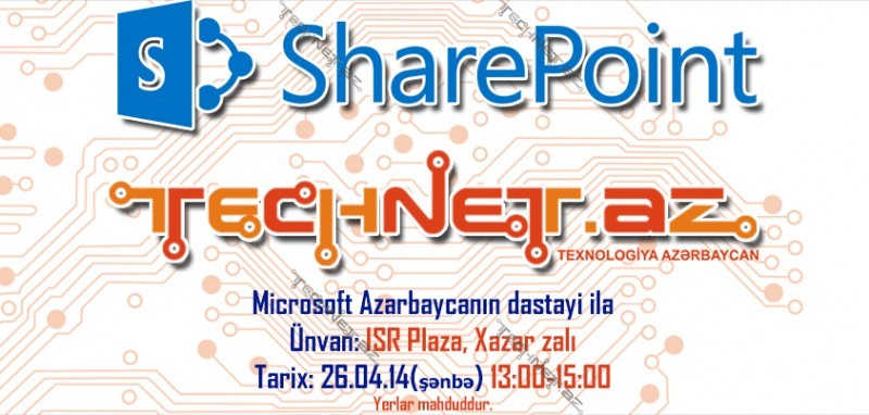 26.04.14 tarixində İSR Plazada, Microsoft Azərbaycanın dəstəyi ilə “SharePoint nədir?” mövzusunda seminarımız olacaq. Məruzəçi TechNet komandasının ən aktiv və təcrübəli üzvlərindən olan Elxan Əliyev olacaq.