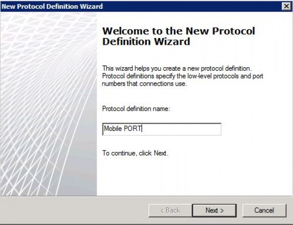 TMG-də Firewall Policy-nin Toolbox hissəsində NEW -> Protocol deyərək davam edirik.