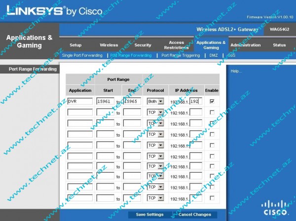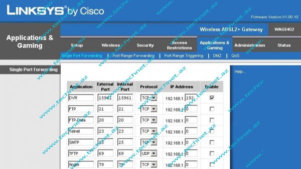 Əlavə: Cisco modemində portların yönləndirilməsi (Əlavə Linksys WAG160N modemi üzərində tətbiq edilib)