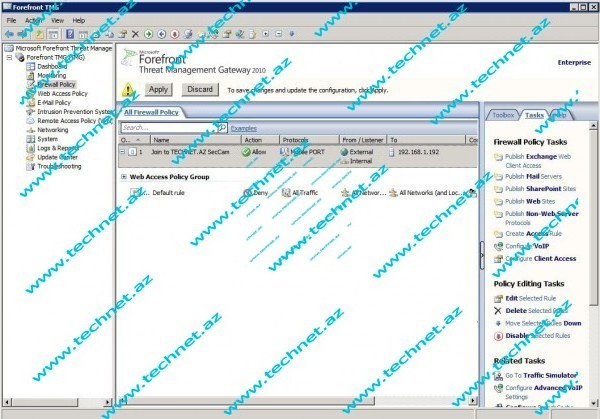 2) Firewall (Forefront TMG) üzərindəki nizamlamalar