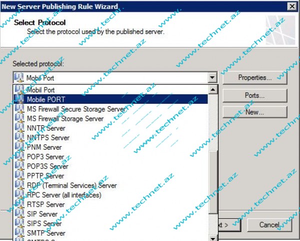 Yaratmış olduğumuz Mobile PORTu Protocol olaraq seçirik.