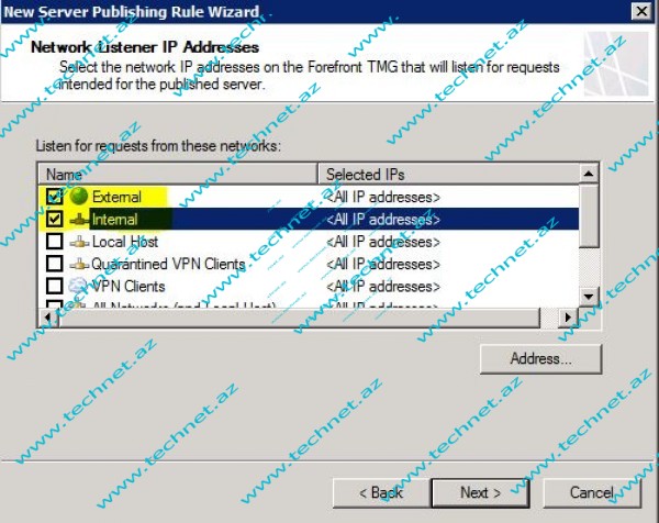 İnternal və External şəbəkələrindən gələn sorğulara (Request) cavab verməsi üçün hər ikisini seçirik.