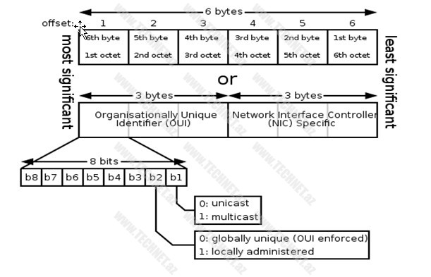 Bu unikal rəqəmlər avadanlığın məxsus olduğu təşkilata mənsubiyyətini (3byte) digər 3 byte isə həmin adapterə məxsusdu. Beləki ethernet paketi qəbul edərkən həmin paketin MAC adresinə baxir və ona gondərildiyinə əmin olduqdan sonra onu aidiyyatı təbəqəyə ötürür. İP paketlər göndərilərkən Ethernet ARP (Address Resolution Protocol ) vasitəsilə ip adresin məxsus olduğu cihazın MAC adresini təyin edir və mac adres təyin olunduqdan sonra ip paket ethernet frame çevrilir və təyinatı sahibinə göndərilir.