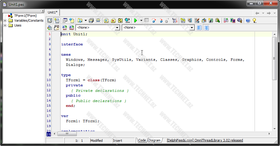 Salam. İnşallah mən bu yazıda sizlərə Delphi proqramlaşdırma mühitini tanıdacam.Amma istəyirəm ilk öncə Delphi haqqında sizlərə bir az məlumat verim.Delphi hal-hazırda dünyada geniş şəkildə yayılmış bir dildir,amma təəssüflər olsun ki,ölkəmizdə bu dil çox da geniş yayılmamışdır və üstəlik də bəziləri tərəfindən belə fikir formalaşır ki,artıq bu dilin dövrü bitmişdir,buna səbəb kimi də Delphi dilinə qarşı alternativ olaraq C++ və Java dillərini qarşı qoyulmasıdır.Məncə hər dilin öz üstünlükləri və təyinatı olan sahələr var əlbətdə ki,söhbət sistem proqramlaşdırmasından və ya hər hansısa bir drayverin yazılmasından gedirsə burda delphi sizə yardım etməyəcək ancaq,hər hansı Tətbiqi proqramların yazılmasında Delphi sizin işinizi çox rahat görəcək