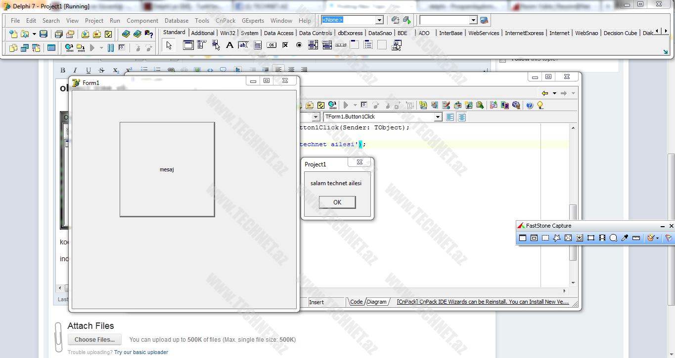 Daha sonra proqramı compile edib işə salırıq və əgər biz buttona bir dəfə bassaq onda bu mətn ‘salam technet ailesi’ mesaj olaraq görsənəcək.