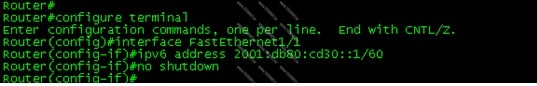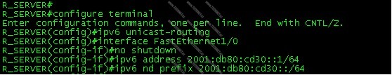 Static configuration – adından göründüyü kimi İPv6 adres statik təyin olunur. Misal olaraq router-də 2001:DB80:CD30::1/60 adresin statik konfiqurasiyaya baxaq: