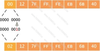 İkinci mərhələdə isə həmin 64 bitlik adresin 7-ci biti 0-dan 1-ə əvəz olunur.