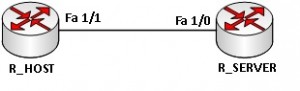 Aşağıda göstərdiyim router-lərdən R_SERVER server rolunu oynnayaraq R_HOST router-inə İPv6 prefix təyin edəcək və router R_HOST isə həmin prefix-ə uyğun MAC adresindən istifadə edərək FastEthernet 1/1 interface-i üçün İPv6 təyin edəcək.