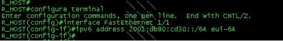 Combination (static configuration with EUI-64)– bu üsulda İPv6 prefix və prefix uzunluğu static olaraq daxil edilir və host hissəsi isə EUİ-64 vasitəsilə MAC addresin köməyi ilə avtomatik təyin olunur.