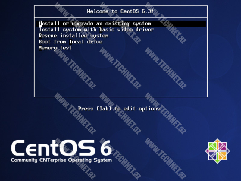 Kompüteri CentOS DVD’sindən boot edirik və ardıcıllıqla əməliyyat sistemini yükləməyə başlayırıq.