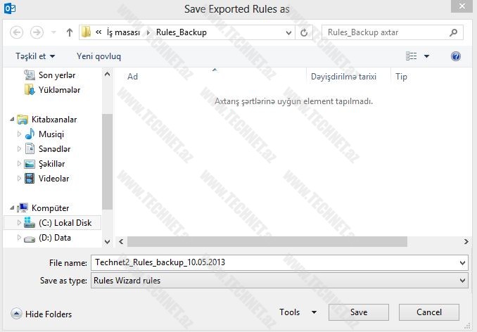 Outlookda Qaydaların (Rule) ehtiyyat nüsxəsinin alınması