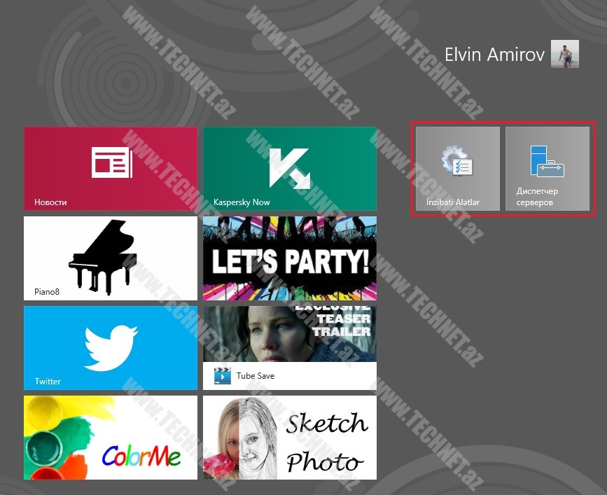 Gördüyümüz kimi, İnzibati Alətlər və Server Menecer Başla səhifəsində öz yerini tutub.       RSAT_Win8_007