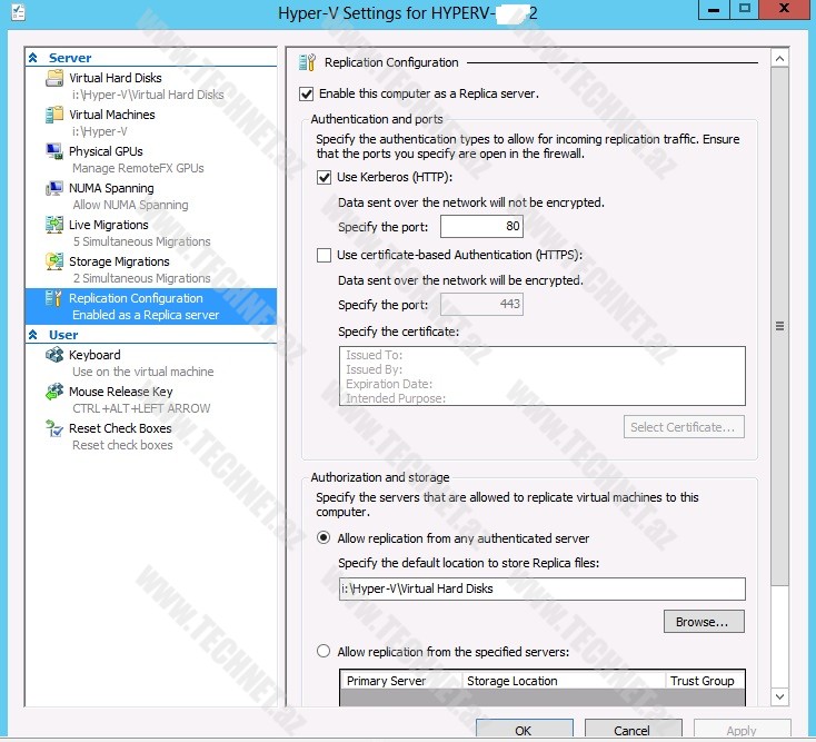 Allow replication from the specified servers – bu seçimi seçsək host üzərinə hansi digər hostlardan virtual maşpınların köçürülməsini göstərə bilərik. Bu zaman yalnız göstərilmiş hostlardan cari host üzərinə virtual maşınların köçürülməsinə icazə vermiş oluruq.