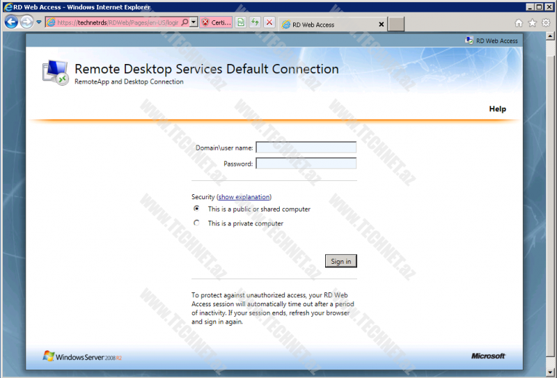 Bu məqaləmizdə Sizlərə Windows Server 2008 R2-də RD Web Access qurulması haqqında məlumat verəcəyik. RD Web Access vasitəsilə start menyusu və ya brauzer üzərindən serverdə olan proqramlardan istifadə edə və ya serverə qoşula bilərsiniz. Bu əməliyyat proqramların virtuallaşdırılması kimi də başa düşülə bilər. İstifadəçi klient kompüterdə Web Access qurulan zaman göstərilmiş linki öz brauzerində daxil edir. Müvafiq istifadəçi adı və şifrəni daxil etdikdən sonra icazə verilən proqramların siyahısı brauzerdə əks olunur və istifadəçi bu proqramlardan istifadə edə bilir. Qeyd olunan imkanların sazlanması və istifadəsi barəsində növbəti məqalələrimizdə məlumat verəcəyik.