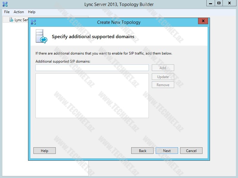 “Additional supported SIP domain” bölümündə əgər varsa “Additional domain” adını yazırıq. Bizdə tək domain olduğundan bu hissəni boş buraxırıq.
