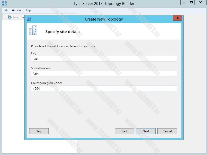 “Specify site details” bölümündə bölgə məlumatlarını daxil edirik.