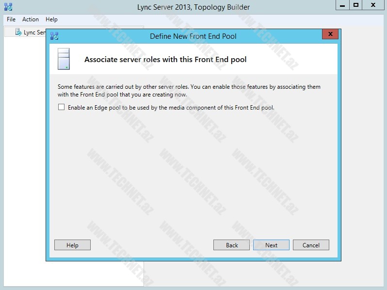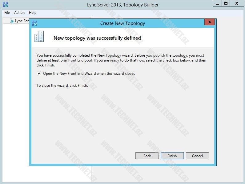 “Open new Front End wizard when this wizard closes” qutucuğunu işarələyərək “Finish” deyirik. Bu qutucuğun işarələnməsi “finish” dediyimiz andan “Front End pool wizard” pəncərəsinin açılmasını təmin edəcəkdir.