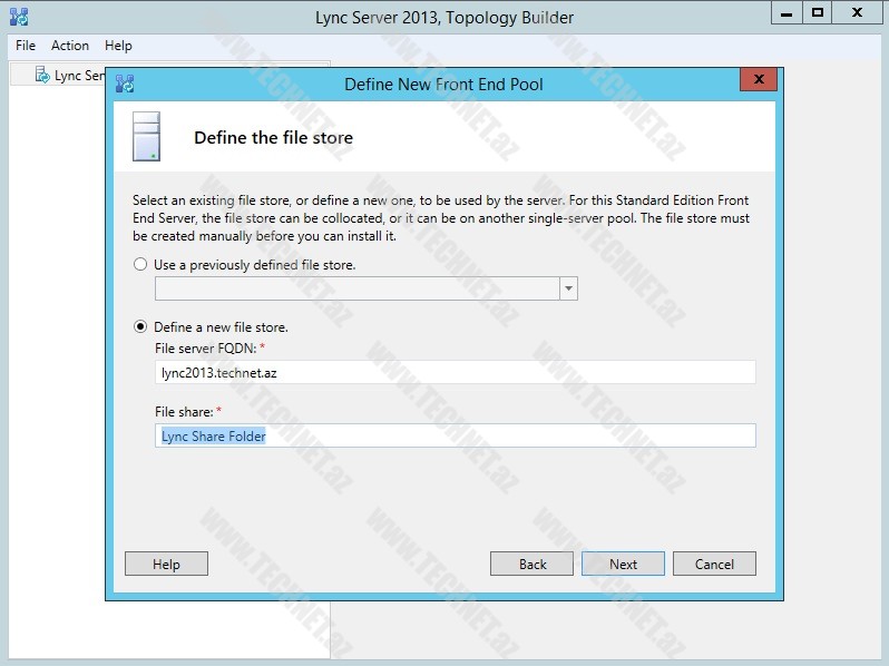 Növbəti addımda yeni yaratdığımız “share” olunmuş qovluq adını, “File Server FQDN” bölümündə isə “share” olunmuş qovluğun yerləşdiyi serverin adını qeyd edirik.