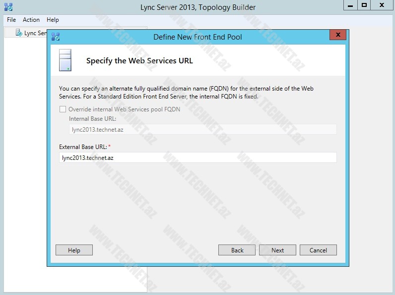 Növbəti “Specify the Web Services URL” pəncərəsində “External Base URL” bölümünə external ünvanımızı yazırıq.