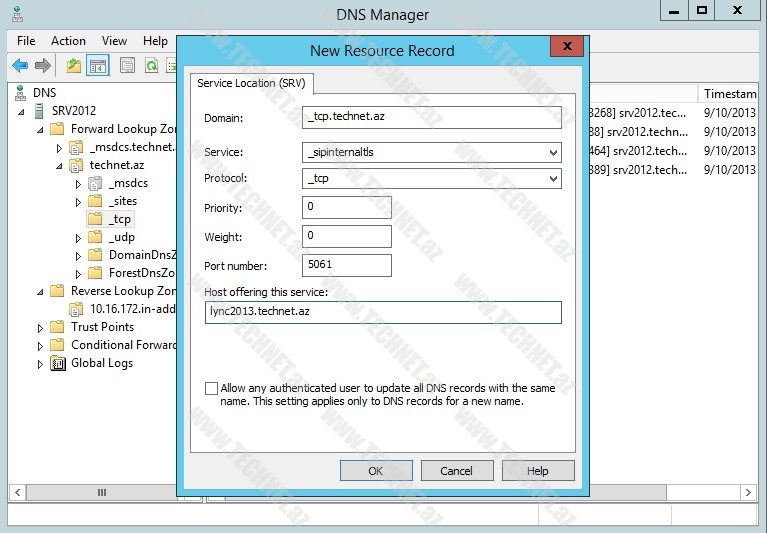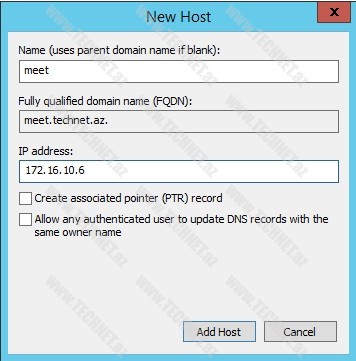 Hər üç record-da “IP adress:” bölümünə “Lync” serverin IP ünvanını yazırıq.