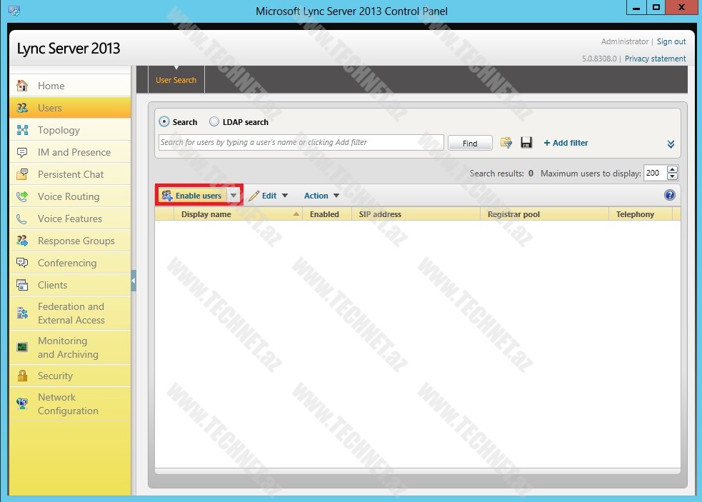 İstifadəçilərimizi əlavə etmək üçün sol menyudan “Users” bölməsinə keçməliyik. Buradan “Enable users” əmrini seçərək istifadəçilərimizi əlavə edirik.
