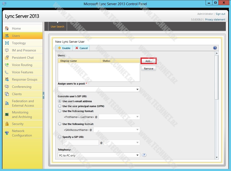 “Enable” düyməsini sıxaraq “Active Directory” üzərində olan istifadəçilərimizi “Lync” server üzərinə əlavə etmiş oluruq.