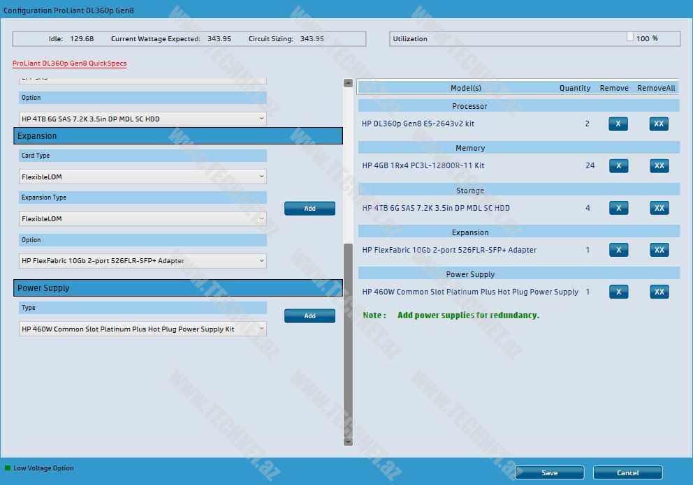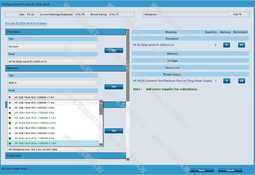 Gördüyümüz pəncərədən serverə detalları əlavə edirik. Məsələn: 6 nüvəli HP DL 360pE5-2643v Kit Prosessorundan 2 ədəd əlavə edirik.