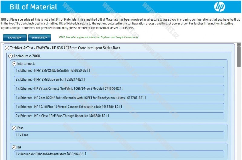 [highlight]Qeyd: Hissə nömrəsi vasitəsilə HP Product Bulletin proqramında geniş şəkildə detallara baxa bilərik. Proqram haqqında digər məqaləmizdə məlumat vermişdik. HP Product Bulletin[/highlight]Artıq qəfəsi vizual olaraq əlavə etdik. Sağ tərəfdə qəfəsin boş çəkisi, boş və işlənmiş yuvaların sayı, neçə Vat güc tələb etdiyini, soyutma üçün tələb olunan miqdar (BTU*) kimi məlumatlar göstərilir.