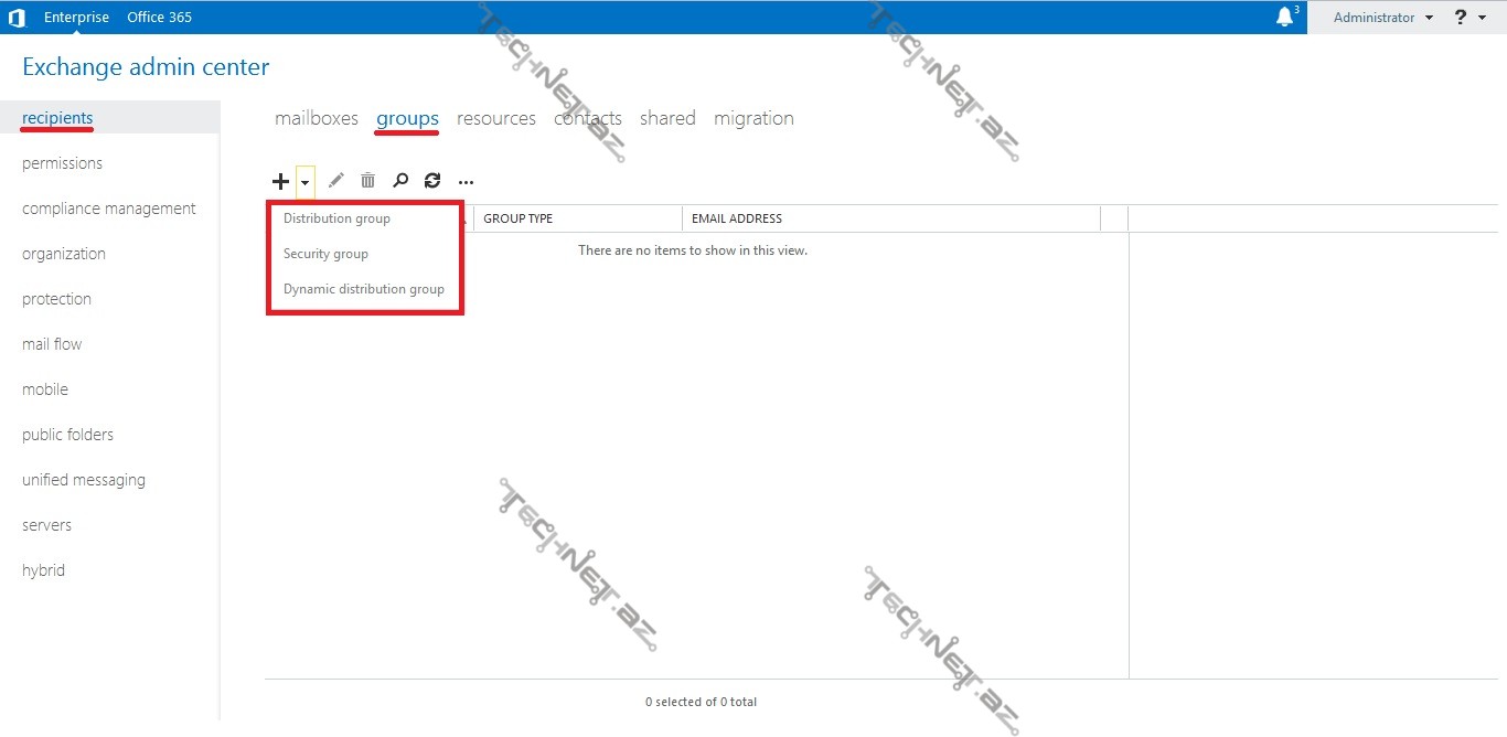 “Exchange Server 2013” üzərində üç tip qrup yaratmaq imkanımız var: “Distribution Group” , “Security Group” və “Dynamic Distribution Group“.
