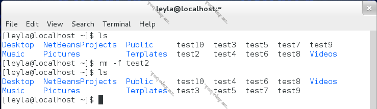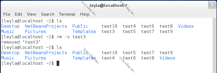 - rm -rf <faylın adı> – bu, -r və -f parametrlərinin birgə istifadəsidir. Bu, çoxlu faylların silinməsi üçün istifadə olunur. Əmri verdiyiniz diqqətli olmanız məsləhətdir. Çünki, bu əmr çox zaman sistemin çökməsinə səbəb olur.