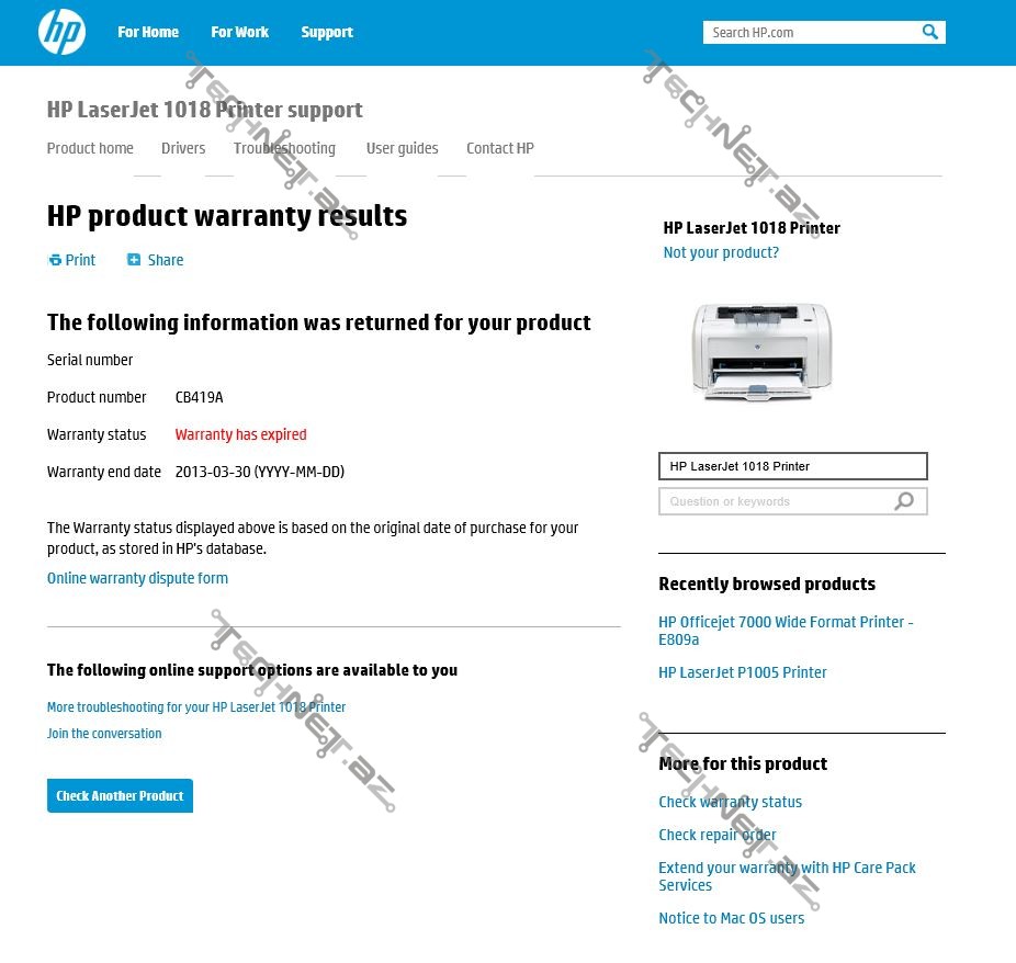 İlk öncə Hewlett-Packard şirkətinin avadanlıqları üçün zəmanət müddətinin yoxlanılmasına baxaq. Aşağıdakı keçid vasitəsilə biz HP məhsullarının zəmanət müddətini yoxlaya bilərik.