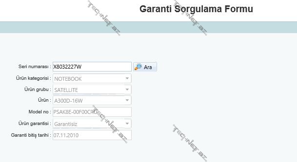 Toshiba markalı avadanlıqları bu keçid vasitəsilə yoxlaya bilərsiniz. Yoxlanış üçün sadəcə seriya nömrəsi (S/N) kifayətdir.