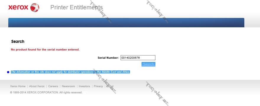 XEROX firması zəmanətin yoxlanılması sistemini Orta Şərq və Afrika ölkələri üçün aktiv etməmişdir. Digər ölkələr üçün isə bu keçiddən istifadə edə bilərsiniz.