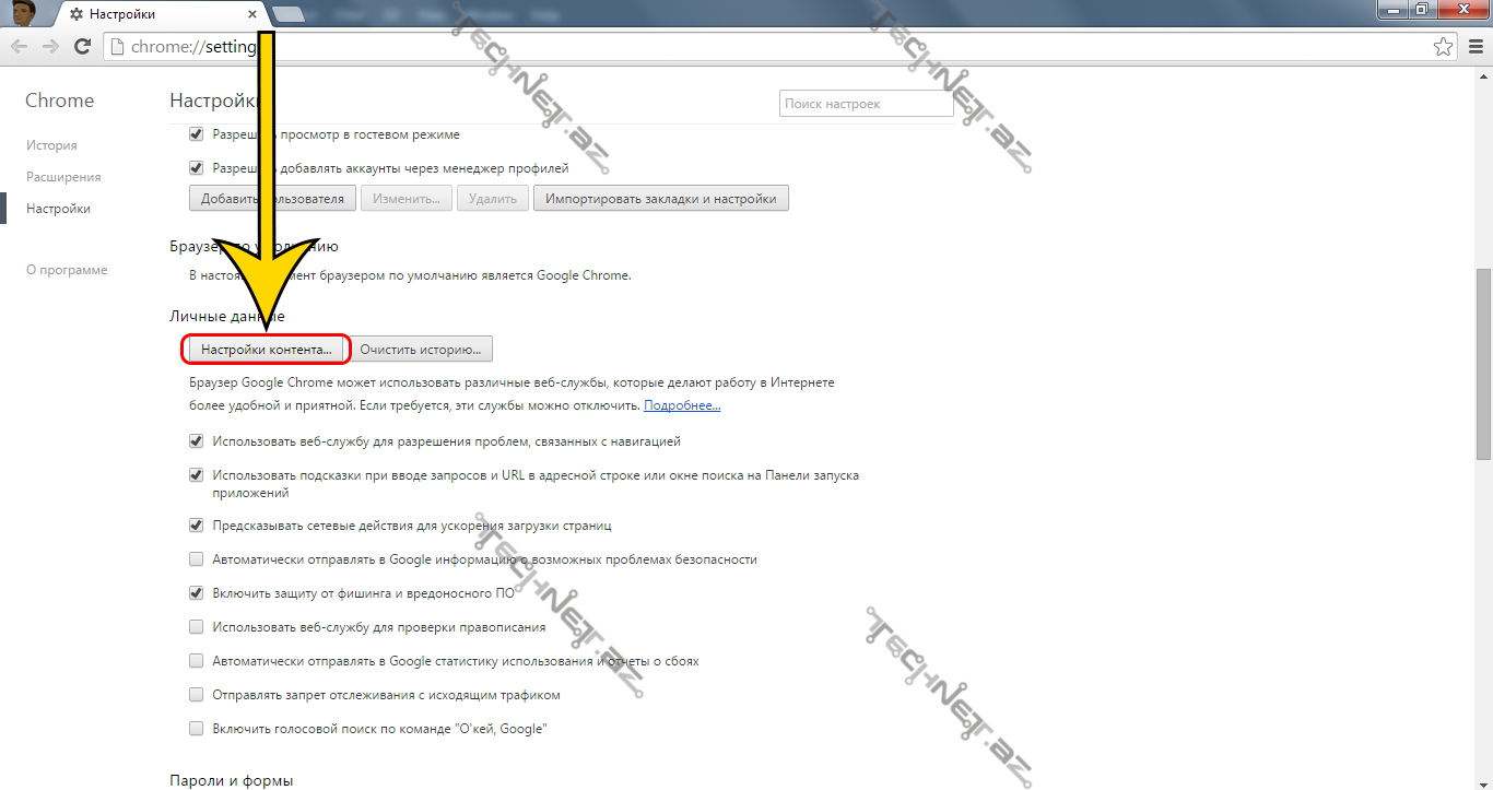 Beləliklə, bizim əlavə ayarlarımız göstəriləcəkdir. Bir sətir aşağıda olan “Kontent ayarları” buttonuna klikləyin: