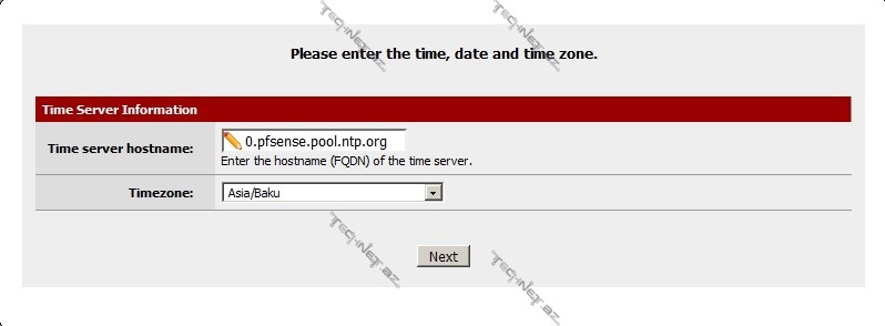 İlk qarşımıza çıxan pəncərə “PfSense” qarşılama ekranıdır. “Next” deyərək keçirik.