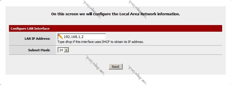 Bu pəncərədə isə daxili şəbəkə kartı ilə əlaqədar konfiqurasiya görünməkdədir. “Next” deyərək davam edirik, çünki “PfSense” qurarkən bu tənzimləməni etmişik.
