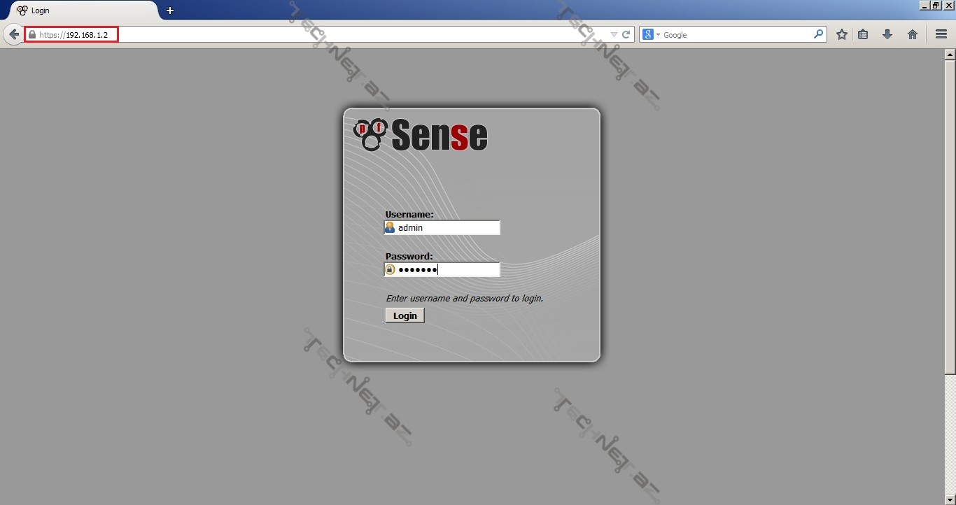 Ötən məqaləmizdə “PfSense” qurarkən “LAN” interfeys üzərində daxil etdiyimiz IP vasitəsilə web interfeysə qoşulaq: 192.168.1.2