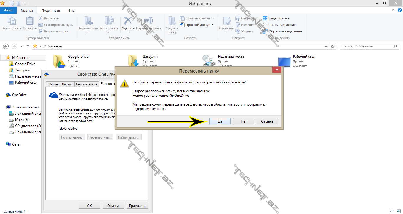 Açılan “Qovluğun dəyişdirilməsi” pəncərəsində “Да” klikləyin.