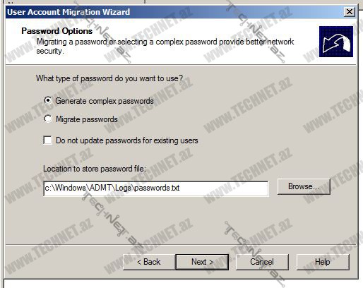 Növbəti pəncərədə istifadəçiləri fərqli şifrə təyin edə bilərik və yaxud onların öz şifrlərini qarşı tərəfə köçürdə bilərik. Bu məqalədə biz yeni şifrələrin avtomatik olaraq təyin olunmasını seçəcəyik.