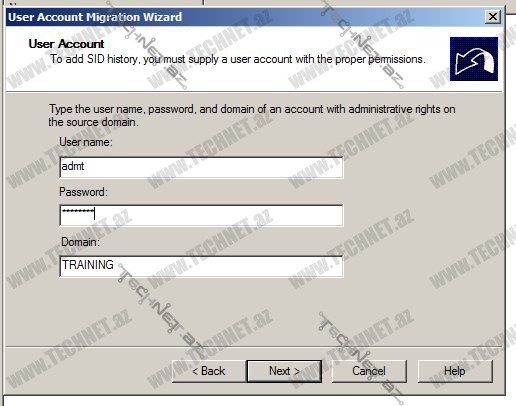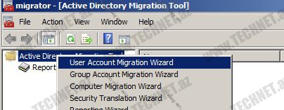 İndi isə Active Directory Migration Tool açırıq və User Account Migration Wizard açırıq.