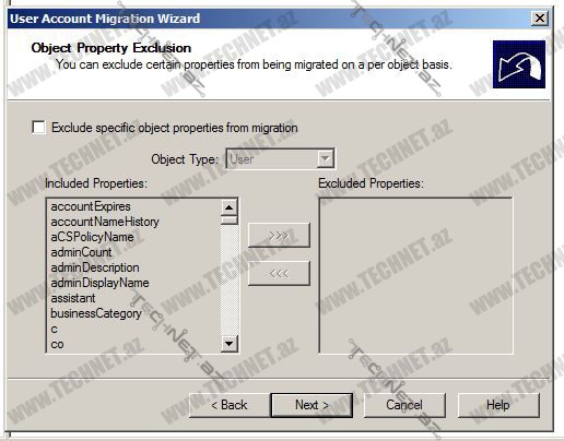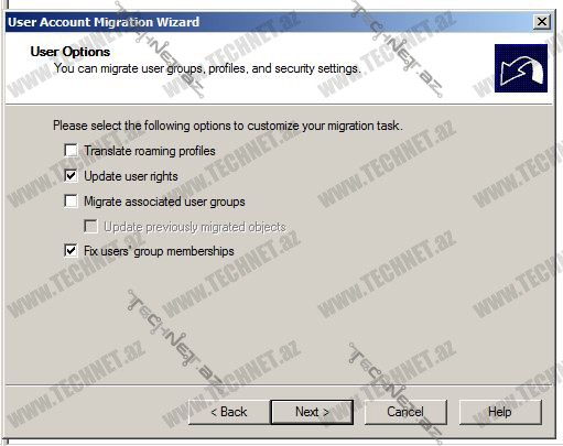 Aşağıdakı pəncərələrdə isə default olduğu kimi saxlayırıq. Bu pəncərələrdə istifadəçilərin müxtəlif məlumatlarının köçməsini təyin edirik.