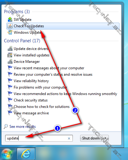 Javanı Update etmək və yeni versiyanın çıxıb çıxmadığını manual olaraq yoxlamaq üçün Start düyməsini klikləyib, axtarış hissəsinə update yazırıq, yuxarıda Java ikonlu Check for Updates proqramı çıxır. Onu açırıq.