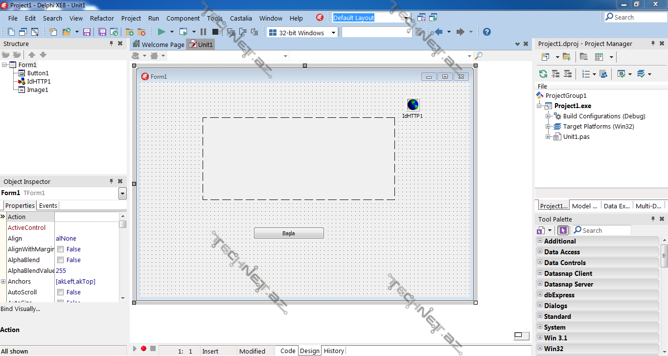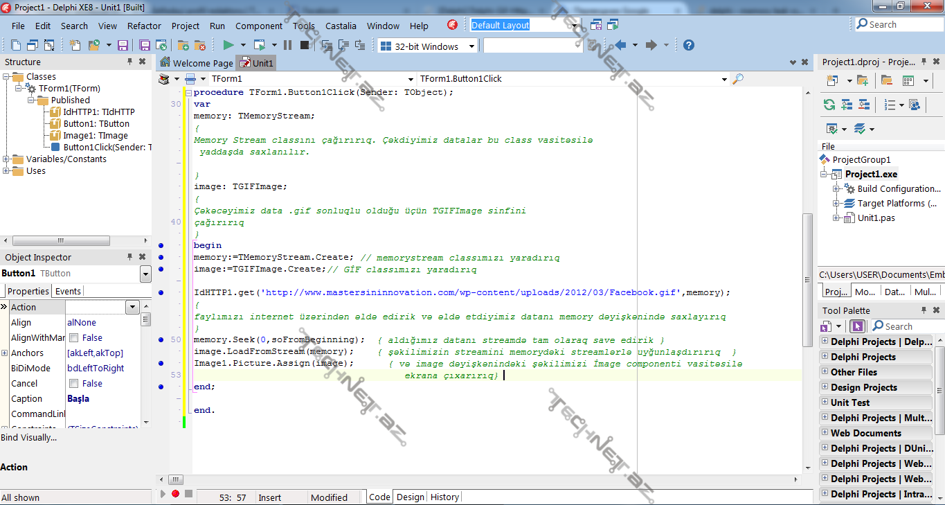 Salam. İlk dərsimizdə İndy  kitabxanası ilə internet üzərində olan hər hansısa bir  “.gif”  formatlı şəkili İmage componenti vasitəsilə ekrana çıxarmaq haqqında danışacağam. Başlayaq.