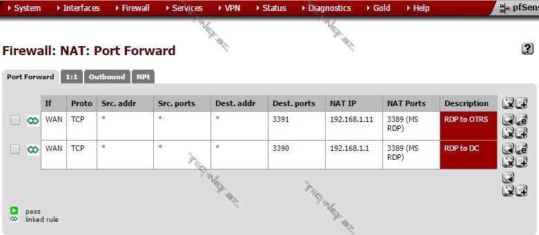 “NAT” bölməsində ilk başlıq “Port forward“-dır ki bu hissəyə ötən məqalələrimizin birində nəzər salmışdıq. Ətraflı “PfSense – Port Forwarding” məqaləmizə nəzər yetirə bilərsiniz.