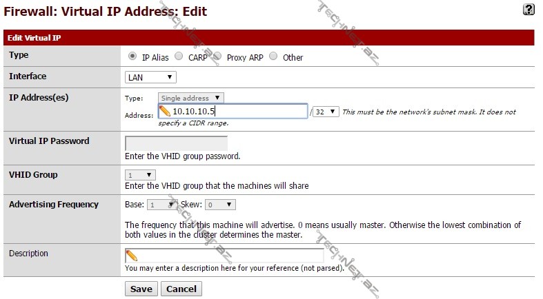 Əvvəlcə virtual IP əlavə edirik. 10.10.10.5 IP ünvanını Virtual IP olaraq əlavə etdik. Bu IP ünvanımız heç bir şəbəkədə istifadə olunmur.