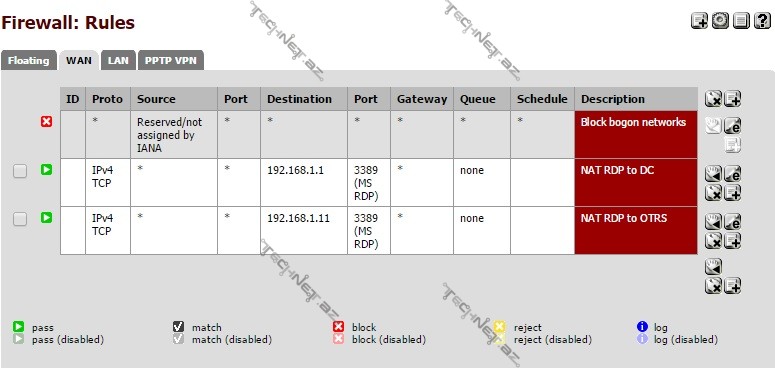 Block və Reject – icazə verməz. Yalnız açıqlamadan da göründüyü kimi “Reject” seçildiyi zaman TCP paketlərə “TCP RST” , UDP paketlərə icə “ICMP port unreachable” cavabı göndərər.