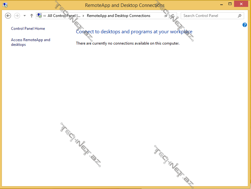 daha sonra client üzərində client üzətində control paneldən remoteapp and desktop connections-a daxil oluruq, görünüş əvvəl aşağıdakı kimi olacaq: