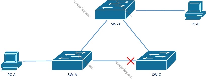Protokol haqqında danışmazdan əvvəl gəlin STP-nin hansı problemi həll etdiyini təhlil edək. Aşağıda təqdim olunan topologiyada istifadəçilərin bir şəbəkədə (subnetdə) olması və STP-nin tətbiq olunmaması şərti ilə PC-A və PC-B arasında məlumat mübadiləsi zamanı baş verənlərə nəzər salaq.