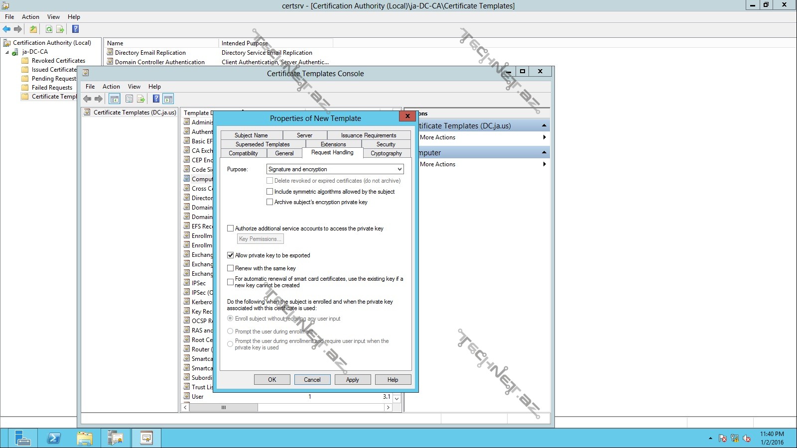 Subject Name –də Supply in the request seçimi edərkən açılmış pənəcərədə OK düymsəini sıxırıq: